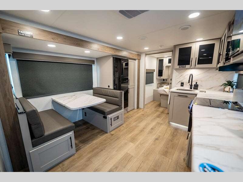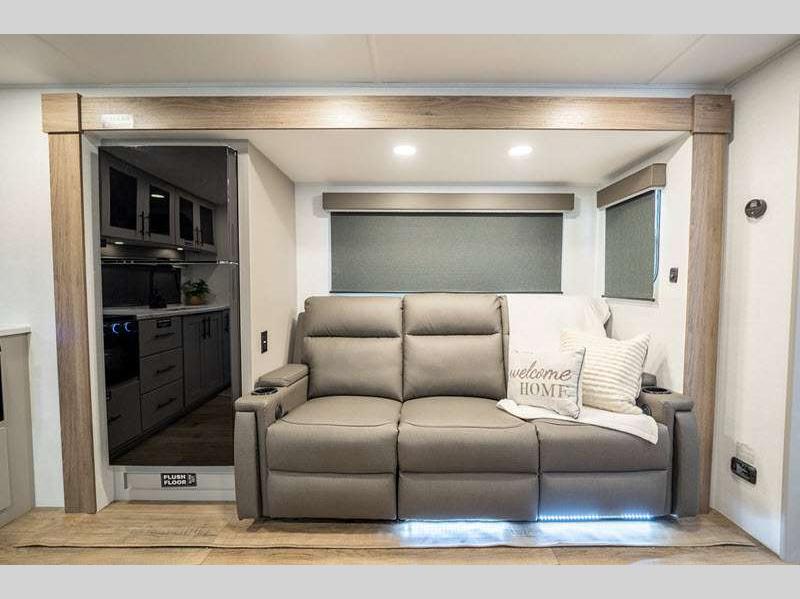 Exterior highlights include Step Above steps on all doors, Goodyear Endurance tires, exterior awning controls, and more. Inside, you'll enjoy fully functional oversized atrium windows, soft closet hidden hinges, and no carpet to make cleaning up easier than ever.