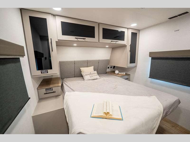 Sleeps 2 Slides 1 Length 23 ft 11 in Ext Height 10 ft 10 in Hitch Weight 568 lbs GVWR 7450 lbs Dry Weight 4992 lbs Fresh Water Capacity 45 gals Grey Water Capacity 45 gals Black Water Capacity 45 gals Available Beds Queen Refrigerator Type 12V Refrigerator Size 10 cu ft Cooktop Burners 3 Shower Size 32" Number of Awnings 1 Water Heater Type On Demand Tankless Awning Info 15' Axle Count 2 Shower Type Radius Solar Wattage 200 watts Similar Floorplans