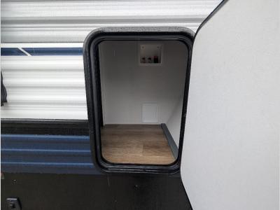 You won't want to camp any other way once you step inside this travel trailer! The rear kitchen has a stainless-steel oven and range to prepare your best meals, a 12V refrigerator to keep your perishables fresh, and a walk-in pantry for your canned goods and snacks for movie night. After a fun day at the beach, you can play a card game at the booth dinette, relax on the theater seating and sofa, or rinse the sand out of your hair in the 32" x 40" shower with a seat in the full bathroom. There is also a front private bedroom with a queen bed slide across from a dresser and a front closet with another closet with washer and dryer prep.