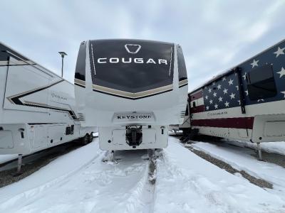 Spend more time having fun and less time worrying about your RV with the Keystone Cougar fifth wheel! These units have all that you will need for excellent vacations. The interior comes hardwood cabinet doors, solid surface kitchen countertops, an Oxygenics shower head and hose, plus a Vent-All window system. You will also appreciate the 12V charging stations throughout, the dual zone Bluetooth audio system, and the on-demand water heater for added comfort. The exterior is also fully outfitted with a convenience center, MaxTurn technology, Lippert axles with anti-lock braking system, and a Curt Road Armor shock absorbing equalizer for smooth towing. Each model is available with the optional Hero Edition. By choosing this edition, you can help support our nation's heros and their families by contributing to the Wounded Warrior Project. This optional package features an industry exclusive full-body paint matte finish, frameless windows, a glass entry door, blackout rims, and green LED exterior accent lighting; see dealer for more details!