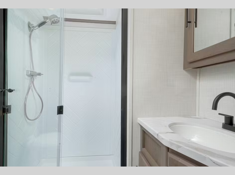 • Large shower w/ retractable shower door and skylight