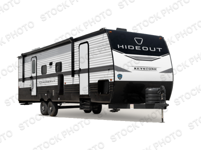 Hideout Max travel trailers by Keystone are built to make the most of every trip, with durable construction, a fully walkable roof with ladder prep, tinted safety glass windows, and solid step entry steps that make getting in and out easy. Standard features like a waterproof drop-frame pass-through for bulky gear, a power awning with LED lights, power stabilizer jacks, and a power tongue jack keep campsite setup simple, while the tankless water heater, SolarFlex™-ready wiring, and 26K dual A/C system on 30-amp service help every Hideout Max feel comfortable and capable, no matter which floorplan you choose.