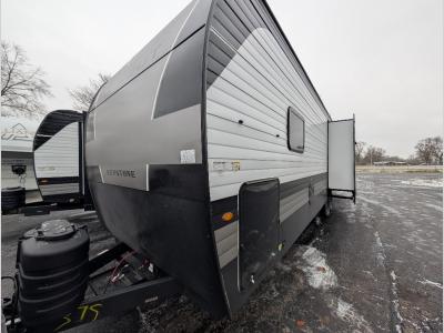 Sleeps 3 Slides 1 Length 35 ft 11 in Int Height 6 ft 10 in Dry Weight 7430 lbs Furnace BTU 30000 btu Available Beds Olympic Queen Refrigerator Type 12V Refrigerator Size 10 cu ft Cooktop Burners 3 Shower Size 30" x 40" Number of Awnings 1 Water Heater Type Tankless AC BTU 26000 btu TV Info LR 50" TV Awning Info 24' Power Awning w/ LED Lights Axle Count 2 Shower Type Standard Electrical Service 30 amp Similar Travel Trailer Floorplans