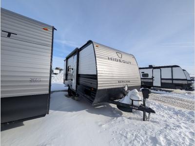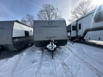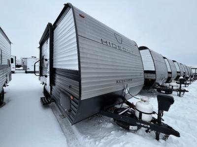 With any Hideout Mini travel trailer by Keystone, you will enjoy lightweight towing thanks to their single axle! The XL tinted safety glass windows are ultra durable, and the power awning will provide protection from the sun as you relax in your camp chairs outside. Each model includes blackout night shades, LED lighting, plus many more interior comforts. There is also a 20K BTU furnace to keep you comfortable, plus a tankless water heater for endless hot showers!