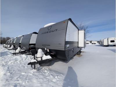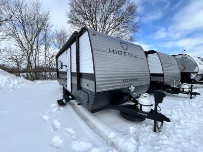 With any Hideout Mini travel trailer by Keystone, you will enjoy lightweight towing thanks to their single axle! The XL tinted safety glass windows are ultra durable, and the power awning will provide protection from the sun as you relax in your camp chairs outside. Each model includes blackout night shades, LED lighting, plus many more interior comforts. There is also a 20K BTU furnace to keep you comfortable, plus a tankless water heater for endless hot showers!