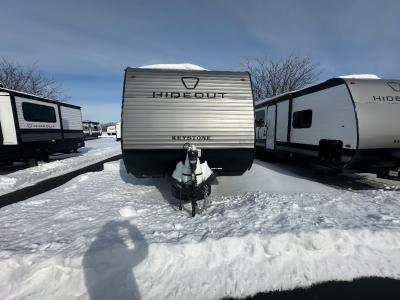 With any Hideout Mini travel trailer by Keystone, you will enjoy lightweight towing thanks to their single axle! The XL tinted safety glass windows are ultra durable, and the power awning will provide protection from the sun as you relax in your camp chairs outside. Each model includes blackout night shades, LED lighting, plus many more interior comforts. There is also a 20K BTU furnace to keep you comfortable, plus a tankless water heater for endless hot showers!