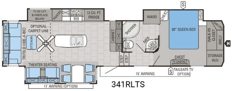 - Tailgate TV: 39" TV in Cargo Area (301RETS, 315RLTS, 341RLTS, 361REQS, 377RLBH, 383FLFS, 387RDFS)