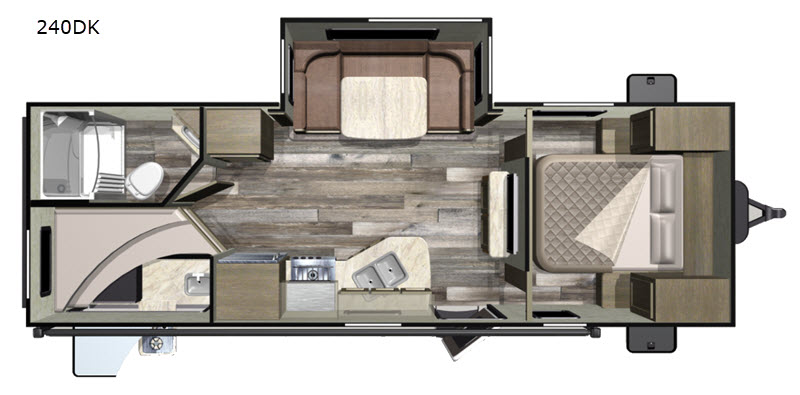 This Starcraft Mossy Oak Lite 24ODK travel trailer makes camping easy! The side slide with the U-shaped dinette keeps it spacious during the day and convenient at night by converting into a bed. Your kiddos will love having their own set of rear bunk beds, and you will love the rear corner bath being located right next to them. Another feature you are sure to love is the front private bedroom. Inside, you will find a comfortable queen bed with nightstands and closets on either side to keep your clothes neat and tidy throughout your trip. Hosting a cookout can be enjoyed even more by using the outside kitchen. Plus, you can crank up the tunes with the outdoor speakers, and stay protected from the sun's rays with the electric awning, all while you grill up your best burgers!